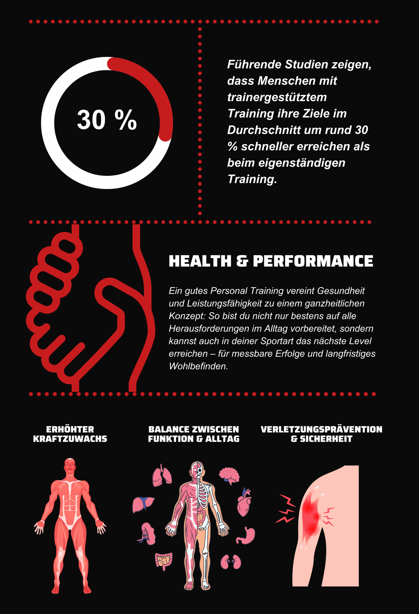 Ein gutes Training macht dich nicht nur stärker, sondern auch gesünder. Du verbesserst Beweglichkeit, Haltung und Energie im Alltag – und kannst gleichzeitig deine sportliche Performance steigern. Gesundheit und Leistung gehen dabei Hand in Hand.